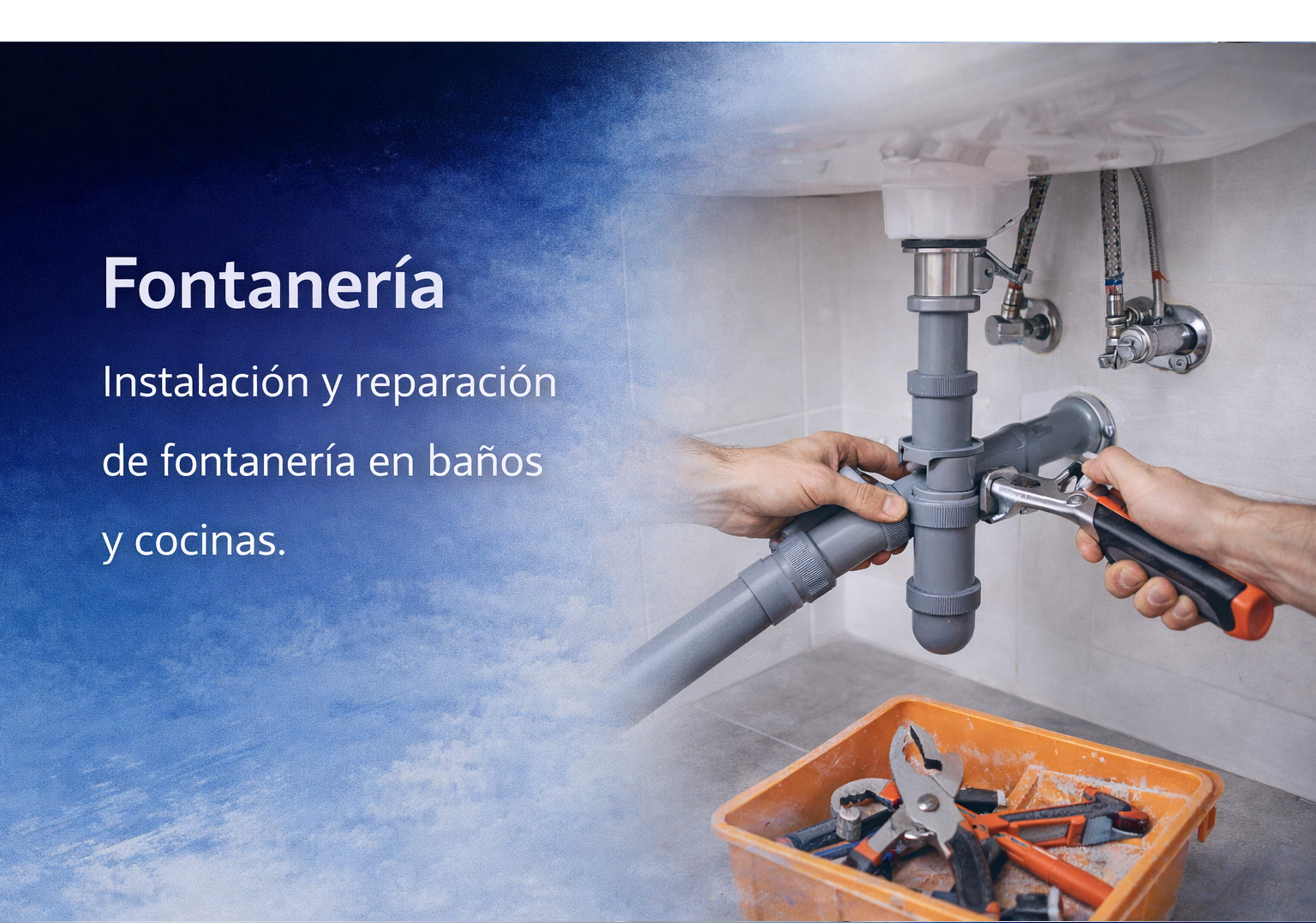 • Reforma de baños• Proyectos en pladur• Fachadas, terrazas y exteriores• Fontanería• Electricidad• Pintura• Aire acondicionado• Reformas integrales